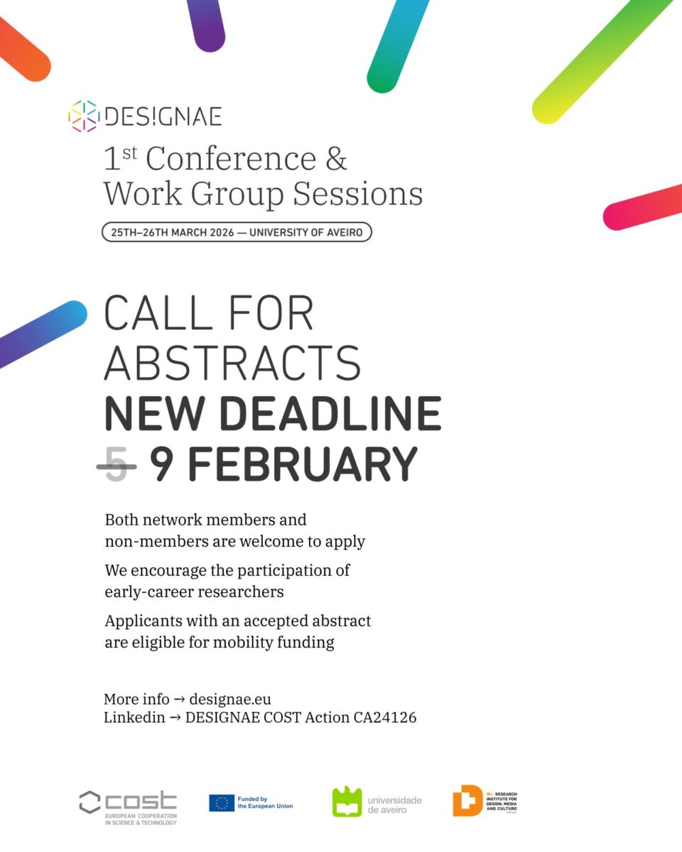 In the scope of the COST Action DESIGNAE “Fostering Nature-Centred biodesign for regenerative futures", the 1st Conference and Work Group Sessions will be taking place at the University of Aveiro on the 25th–26th of March, 2026.