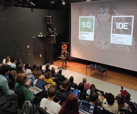 As part of COST Action DESIGNAE – “Fostering Nature-Centred BioDESIGN to Explore Regenerative Futures”, a project led by ID+ Research Institute for Design, Media and Culture, University of Aveiro (UA) in collaboration with the CICECO, TEMA and CESAM Research Units and funded by European Cooperation in Science & Technology, European Union, an Open Lecture entitled “Super Green: Regenerative Materials, Structures & Aesthetics” was held on 7 November at the Department of Communication and Art of the UA, with Fernando Galdon (Royal College of Art, London) presenting the concept of Bio-Brutalism, an emerging aesthetic that combines material regeneration and sustainable design, discussing several case studies.